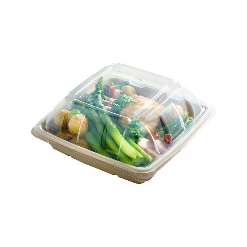6. Sabert Compostable Square Hinged Container: 3 Compartment 300 X Piece 300 X Piece