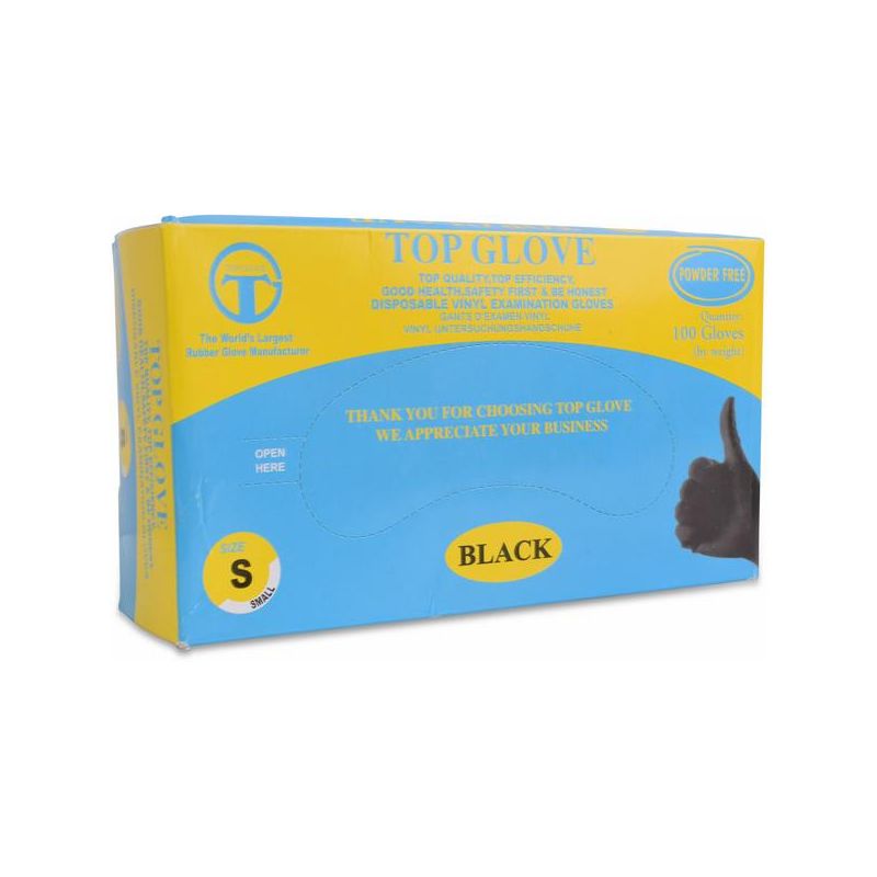 25. Top Glove Vinyl Black Hand Gloves P/F - Small 10 X Piece 10 X Piece