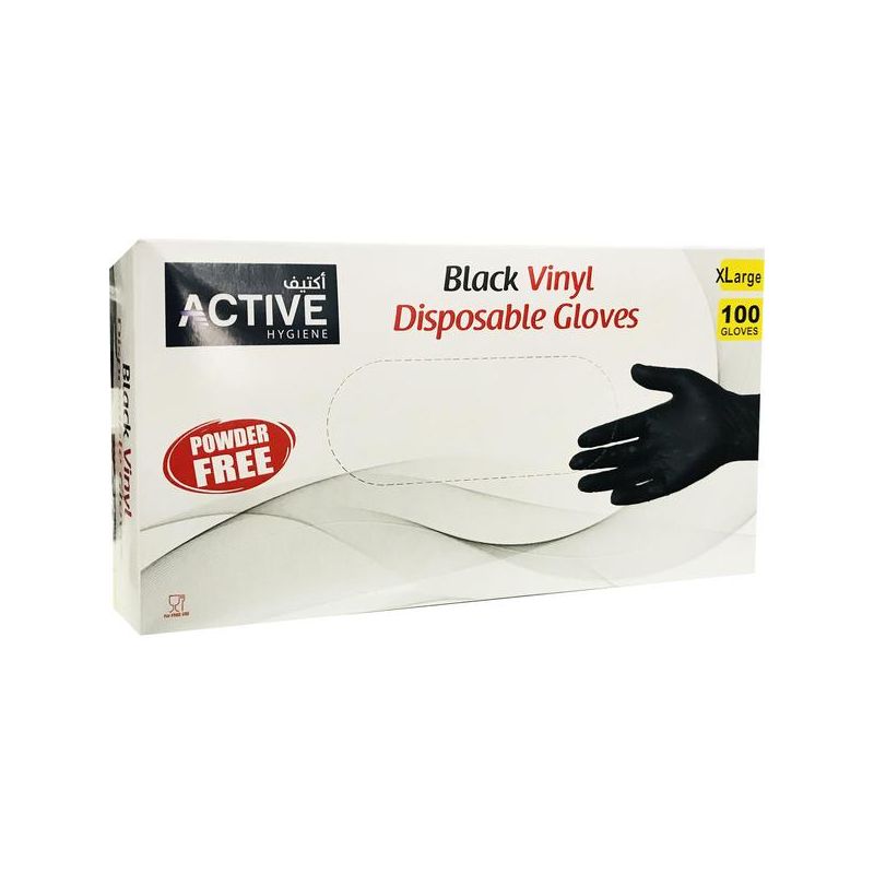 22. Active Vinyl Powder Free Gloves (Black) - XLarge 100 X Piece 100 X Piece